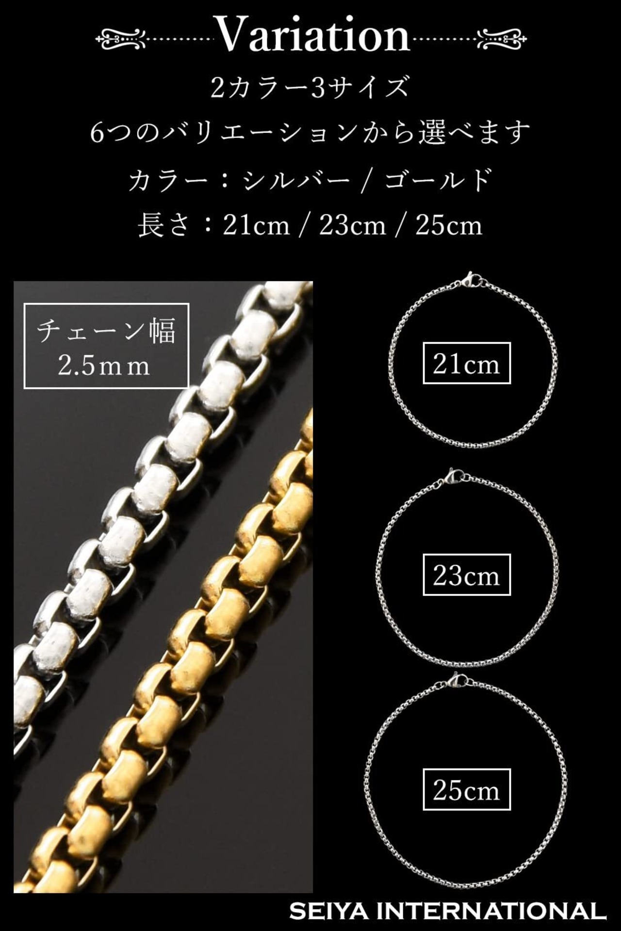 [SEIYA INTERNATIONAL] アンクレット メンズ レディース つけっぱなし ステンレス チェーン (ゴールド, 21)