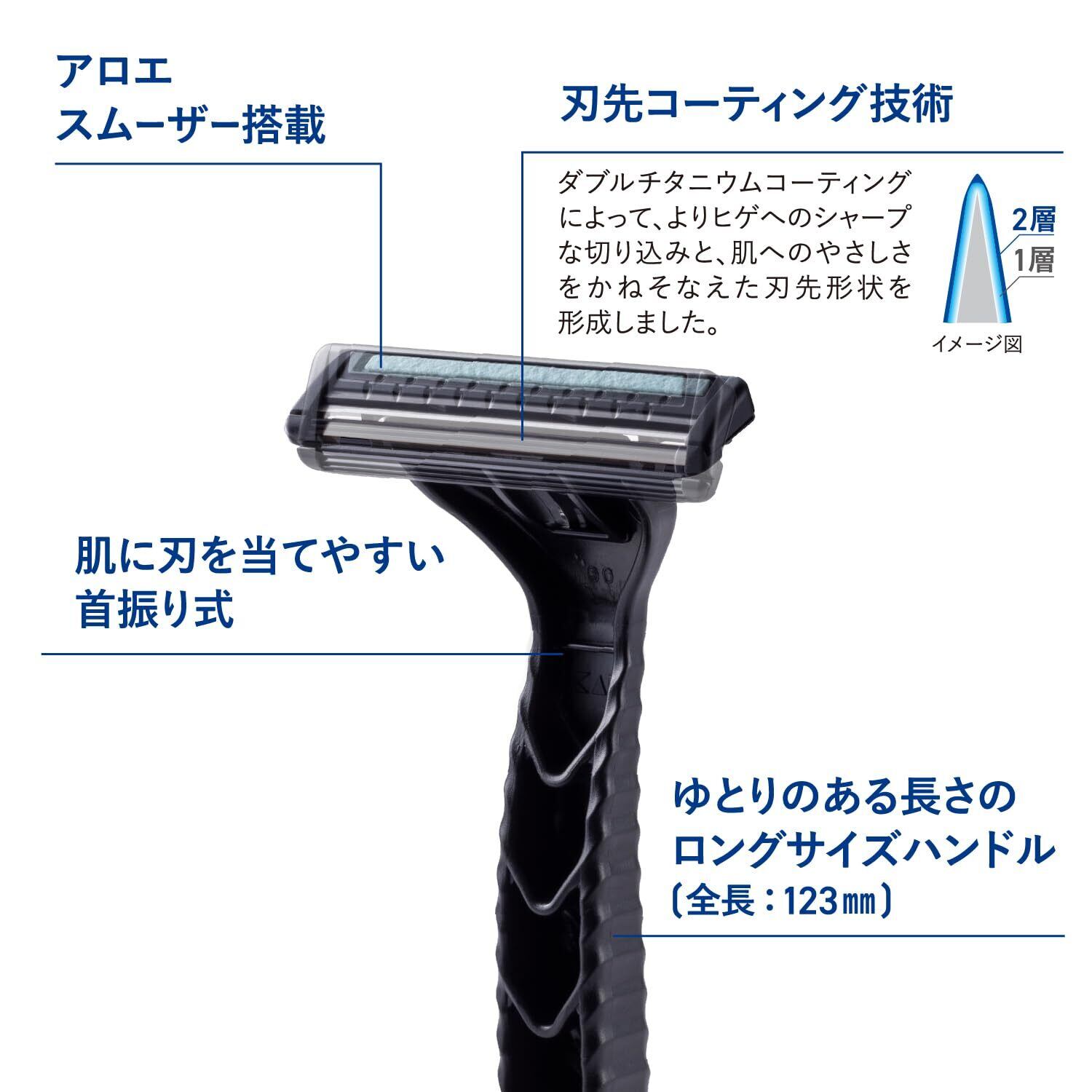【首振り式2枚刃で肌にフィット】2枚刃ならではのさっぱりとした仕上がりを楽しめます。また、本体のヘッドは首振り式なので、肌面の凹凸に合わせてフィットしやすいのが魅力です。