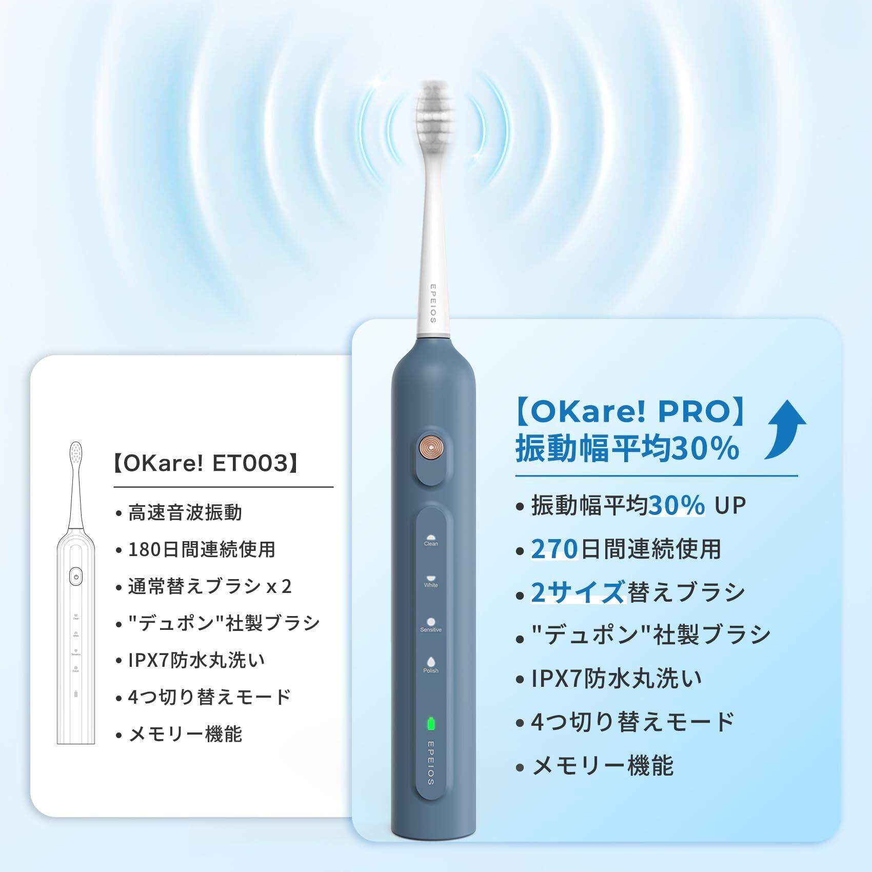 【現役歯科医師推薦】電動歯ブラシ エペイオス(Epeios) OKare PRO 音波歯ブラシ ソニック 歯ブラシ 電動 替えブラシ 2本 Type-C充電式 270日間使用可能 4時間急速充電 IPX7防水 メモリー機能 プレゼント ギフト