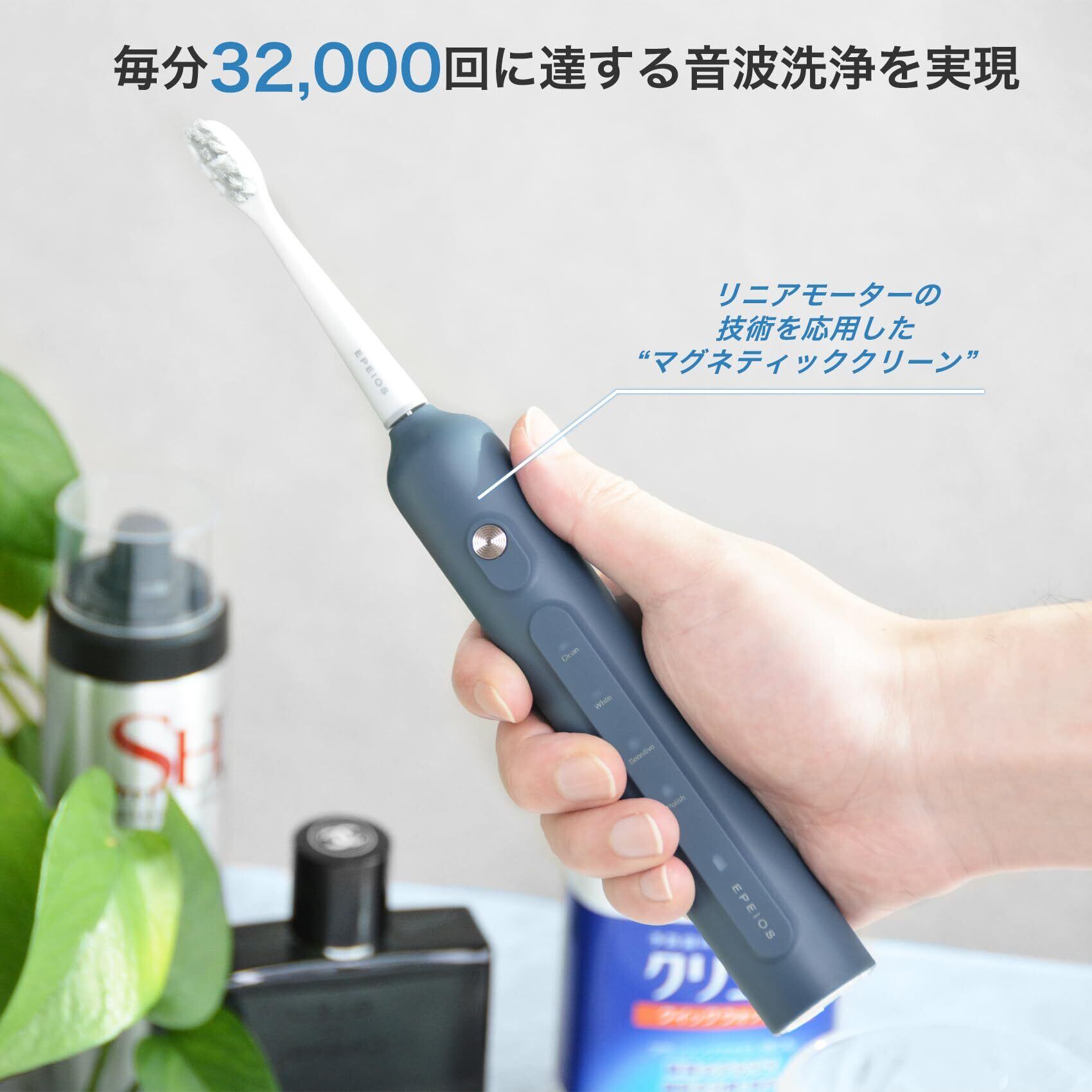 【抜群な音波振動技術採用 ・静音設計 ・IPX7防水】エペイオス音波電動歯ブラシはデュポン社製のブラシを採用し、リニアモーターの技術を応用した「マグネティッククリーン」技術を搭載し、高速音波振動と振幅でし歯垢をかき出して、歯間や歯ぐきの汚れをやさしく落とします。55dBの低ノイズ設計で、IPX7防水性能も持っており、シャワー中やお風呂でも安心してご使用可能な音波振動歯ブラシです。