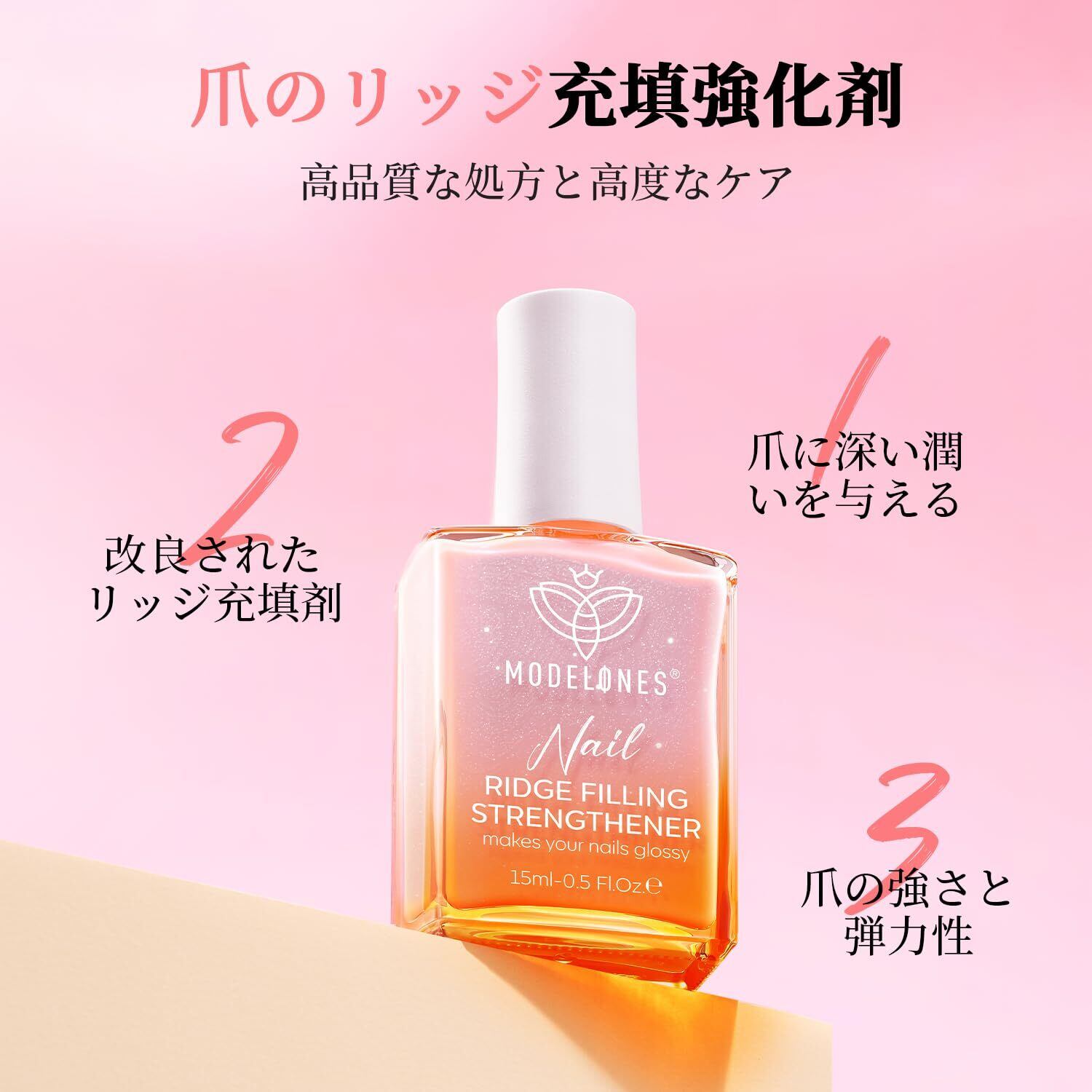 Modelones 15ml 2 in 1 ジェルネイル ネイルケア リッジコンシーラー リッジフィラー強化剤 ベースコート ネイルポリッシュ修復 薄く傷んだ爪用のネイル成長 クリスタルクリア ポリッシュ(ピンク) | thanks39