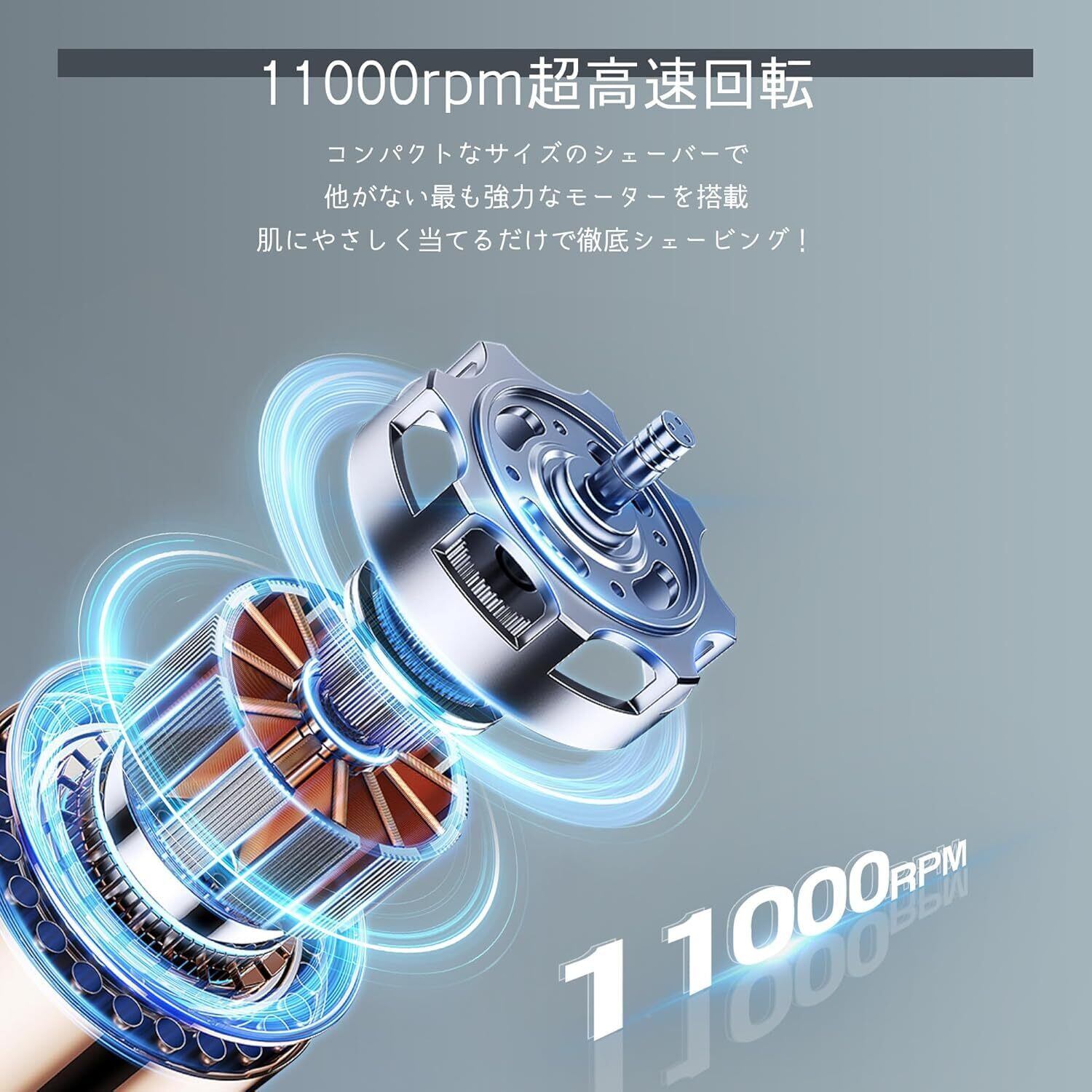 【11000rpm超高速低騒音モーター】この最新型のポータブル電動シェーバーは、65dBの低騒音を実現した高速モーターを採用して、11000rpm回/分超高速回転で髭をしっかりキャッチし、肌にやさしく当てるだけで細かい髭や、濃い髭などを徹底シェービングします。革新な自動研磨システムを搭載して、常にシャープな切れ味を続きます。