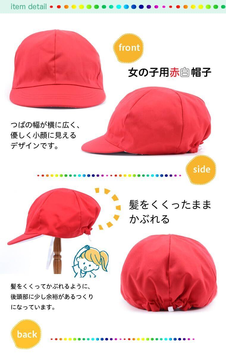 [Happy Beans!] 女の子用赤白帽子 引掛け用ループ付 M L LL G5 子供 ジュニア