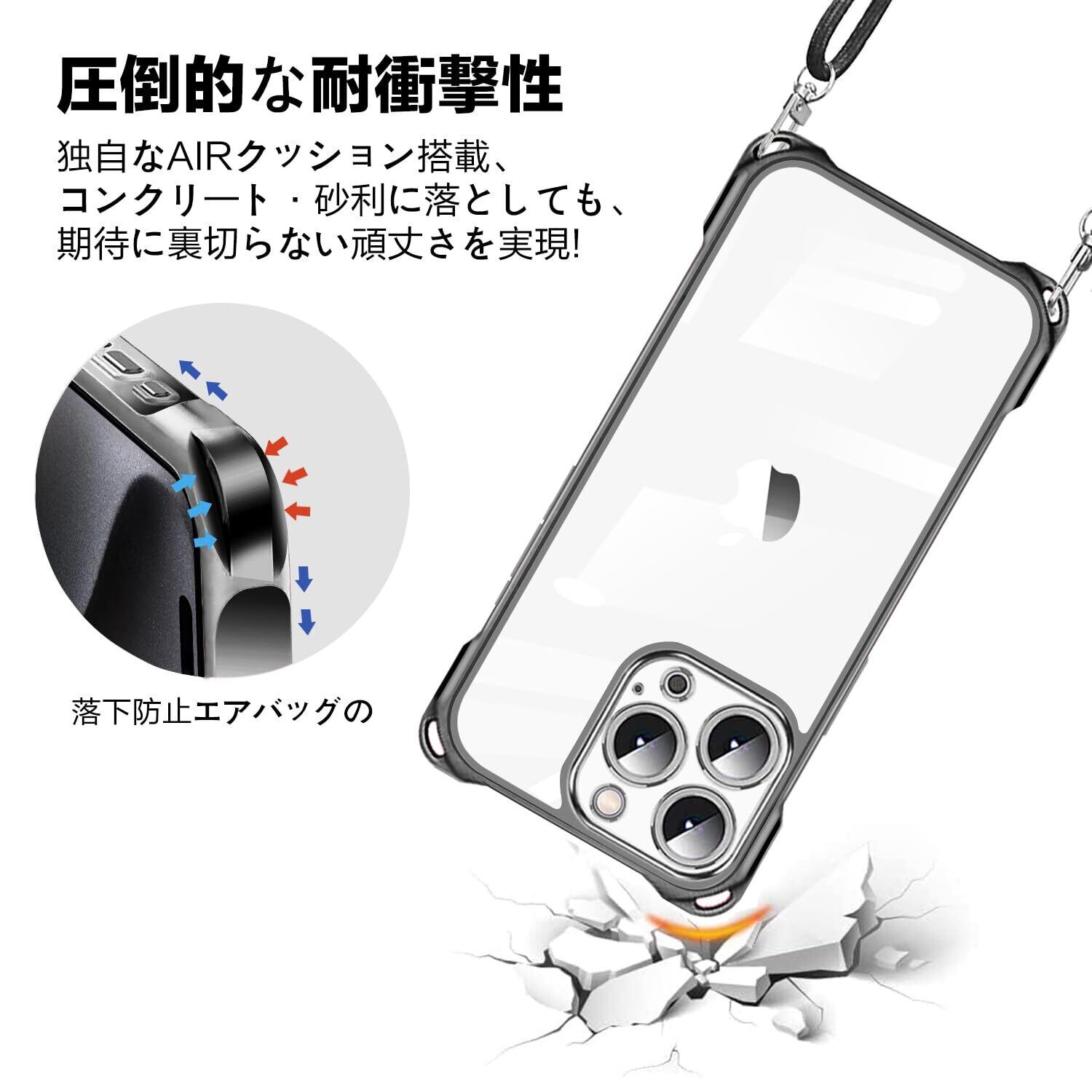 iPhone 15 Pro Max 用 ケース クリア ショルダー iPhone15pro max 用 スマホケース アイフォン15ProMax カバー 肩掛け 斜めかけ 縄掛けケース 透明 薄型 軽量 TPU 携帯ケース 紐付き 斜めがけ 織りストラップ付き ネックストラップ ショルダー ケース 縦/横 2WAY 長さ調整可能 取り外し可能 落下防止 紛失防止 ワイヤレス充電対応 (ブラック)