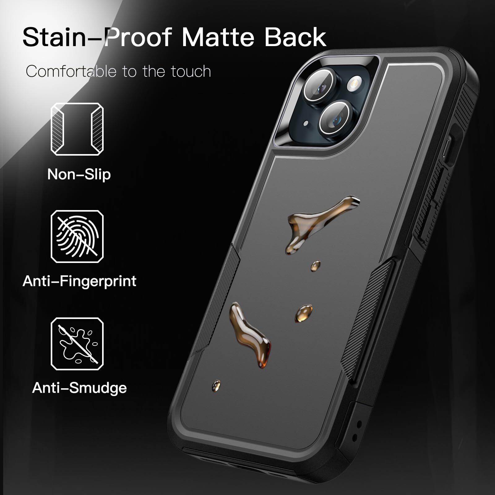JEDirect iPhone 15 Plus 6.7インチ用 ケース 高耐久性 頑丈な二重保護 耐衝撃 タフカバー マットバック付き (ブラック)