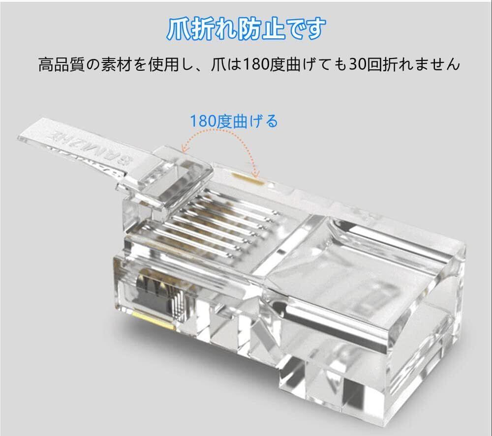 RJ45コネクタ CAT6 CAT5E CAT5 LANケーブル用 貫通型 LANコネクタ 配線簡単 爪折れにくい RJ45 モジュラープラグ 8P8C LAN コネクタ 1000Mbps 単線ヨリ線対応 ブレードが金めっき (50個セット)