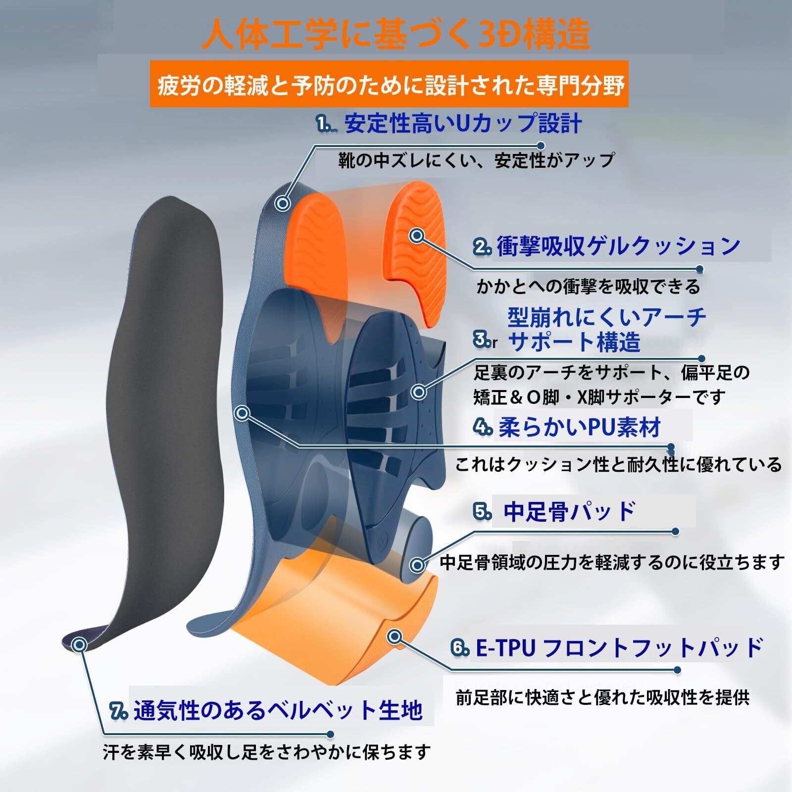 スポーツインソール 衝撃吸収 立ち仕事 中敷き 人体工学·美姿勢キープ アーチサポートアーチサポートインソール 快適性 抗菌防臭 日常生活