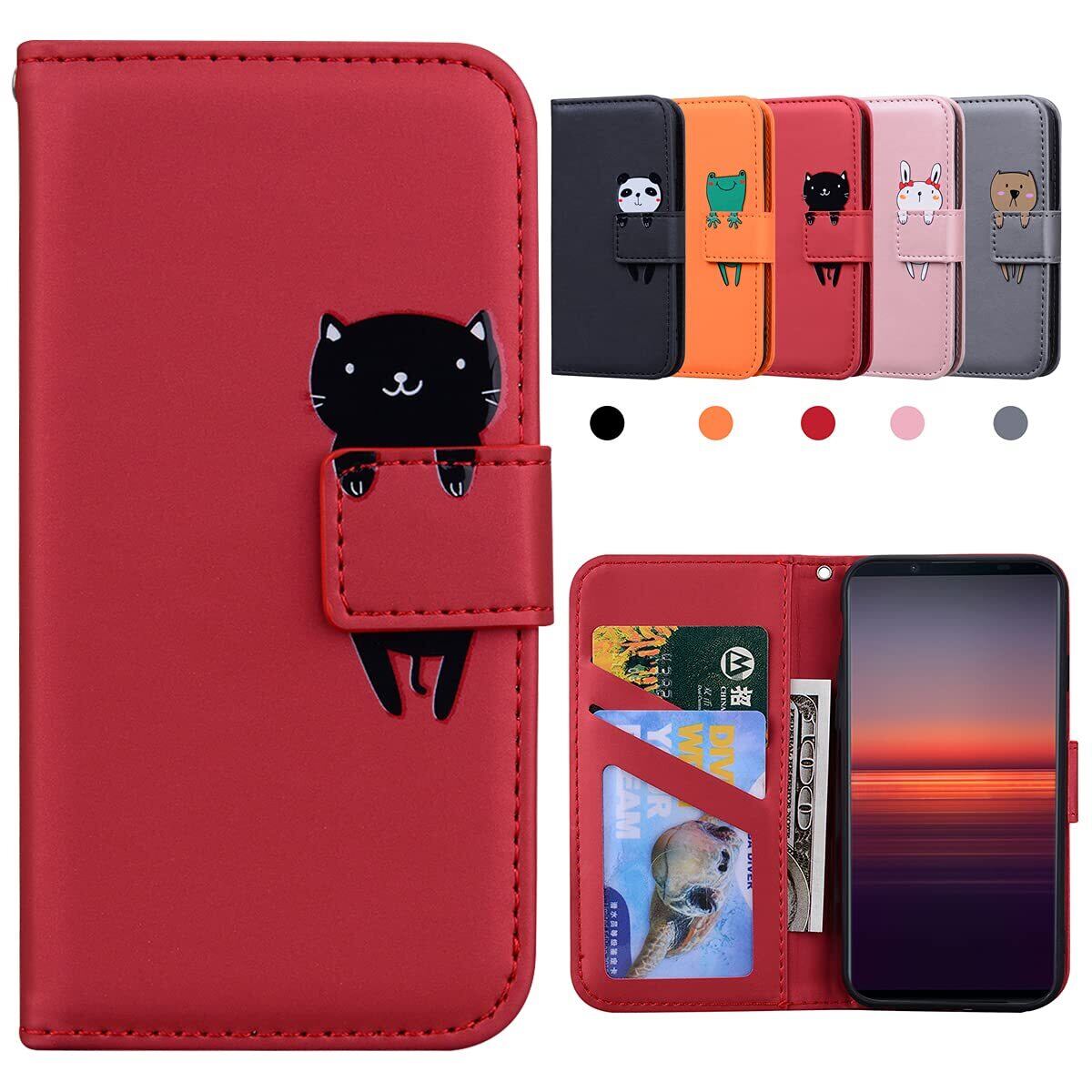 Sony Xperia5 II ケース 手帳型 エクスペリア5ii ケース SO-52A SOG02 かわいい動物 薄型軽量 so-52a ケース xperia 5 ii ケース カード収納 スタンド機能 傷つけ防止 xperia5 ii ケース 手帳型 so52a ケース 落下防止手帳型 おしゃれ 便利 財布タイプ カバー [6.1インチSony Xperia 5 II ] (赤)