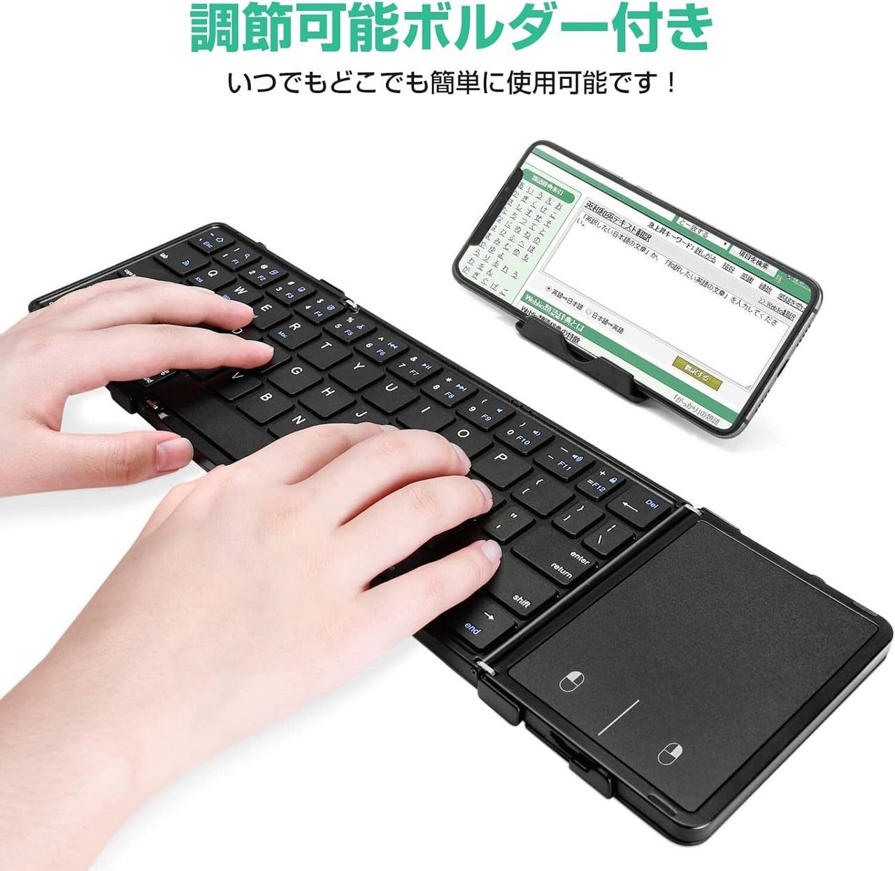 Ewin Bluetooth キーボード 折り畳み式 ワイヤレス 3つデバイス同時切替可能 フルサイズ タッチパッド搭載 無線 Type-C充電式 Windows/Mac/iOS/Android対応 パソコン タブレット スマホ用 静音 軽量 携帯便利 日本語説明書付き