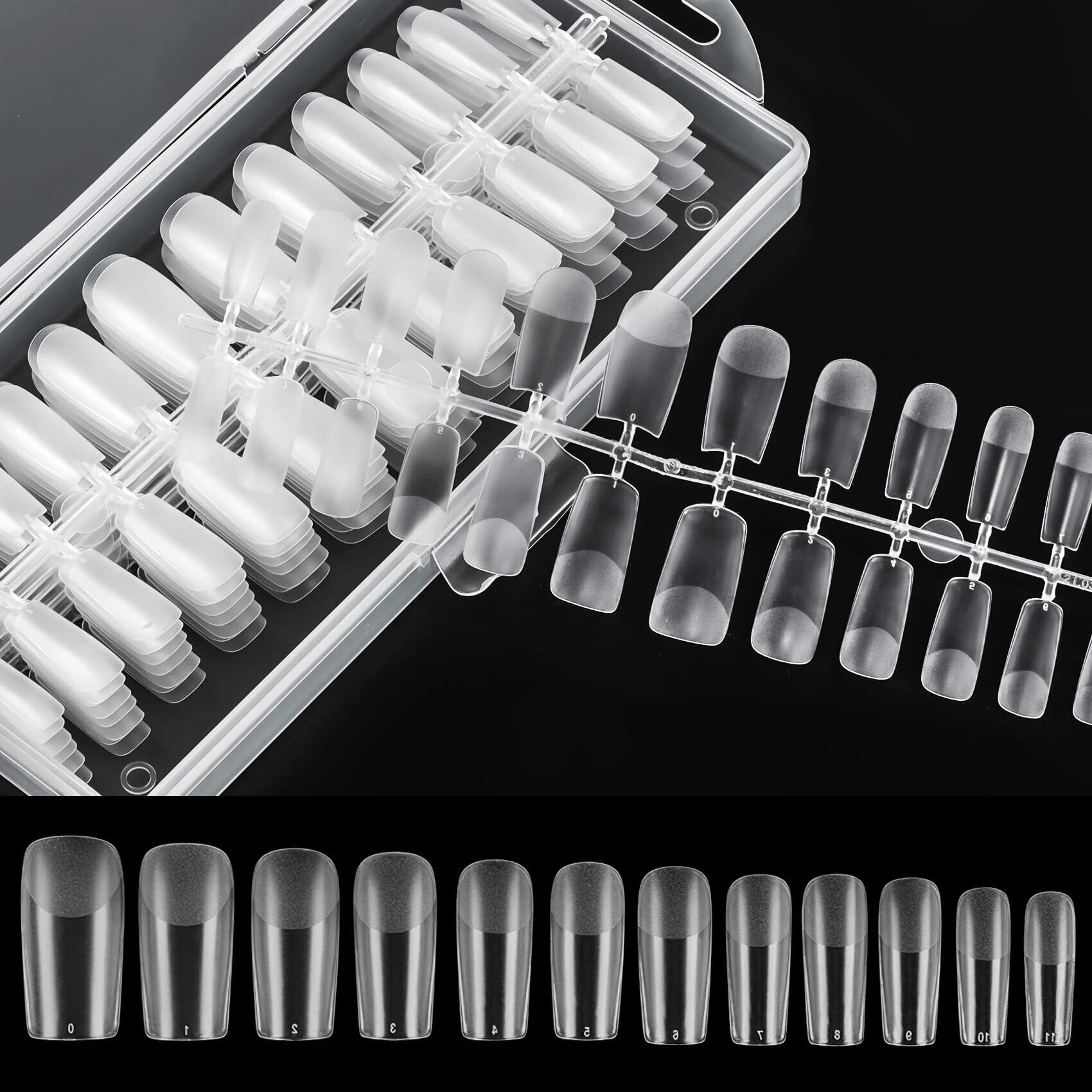 Annhua クリア ネイルチップセット 240枚 透明ネイルチップ スクエア ネイルチップ 長さだし 超薄 艶消 クリアチップセット つけ爪 ネイル長さだしチップ 自然なフィット感 ネイル用品 練習用 収納ケース付き
