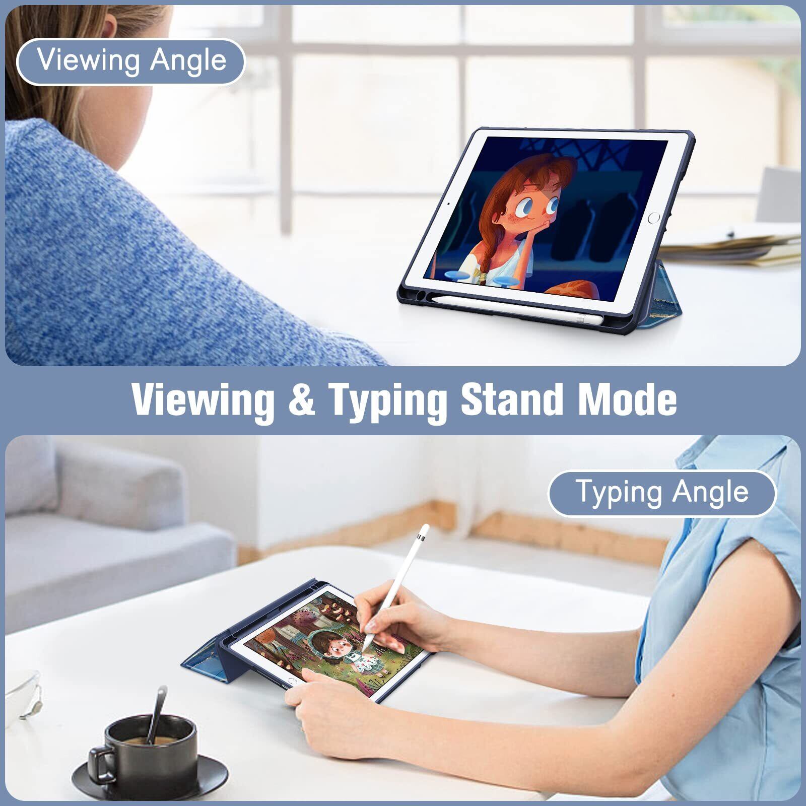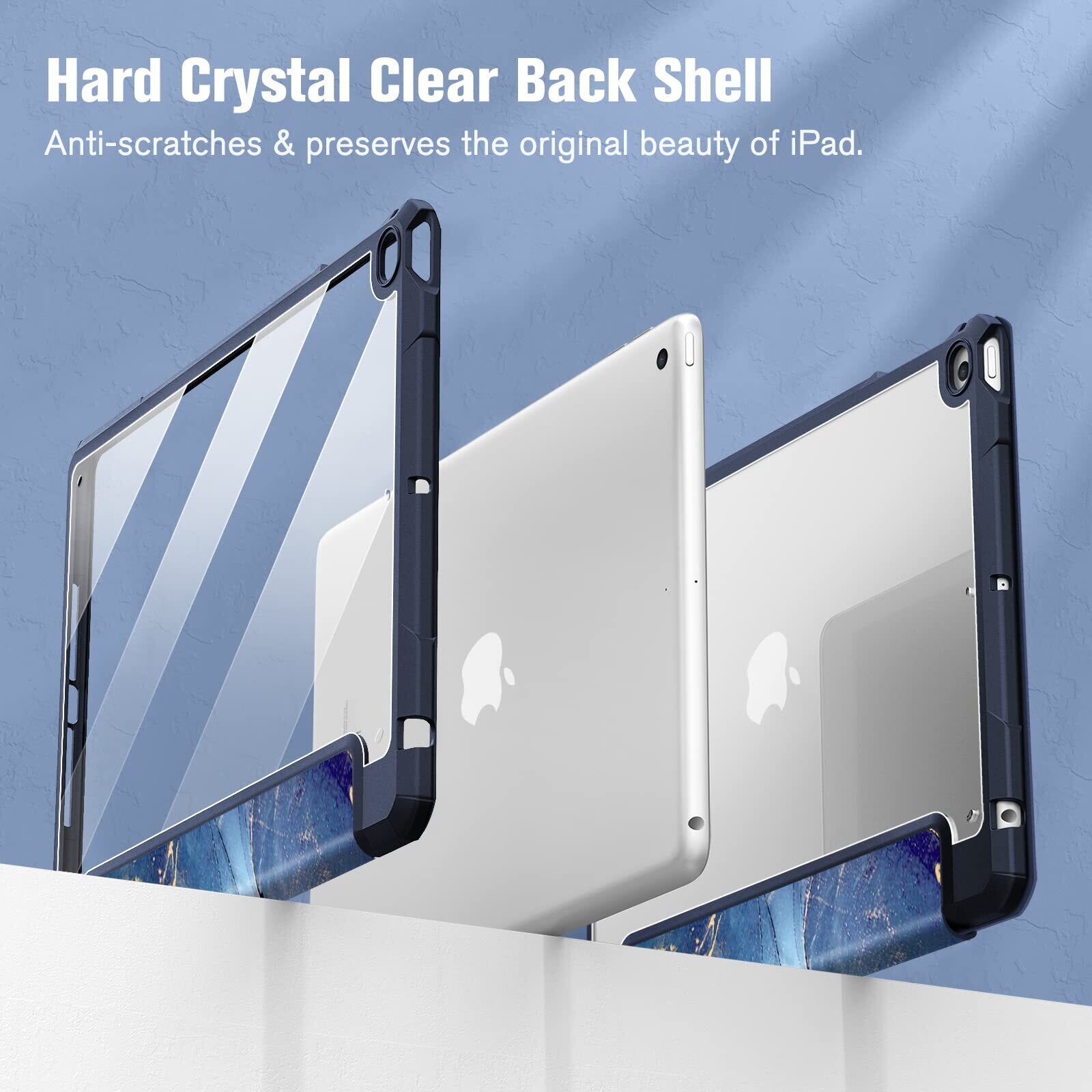 Fintie iPad 9.7 2018 2017 / Air 2 / 1 ケース 透明バックカバー Apple Pencil 収納可能 三つ折スタンド スリープ機能 軽量 薄型 傷つけ防止 PU合成レザー TPU 第6 / 5世代対応 (柄Xマーブルブルー)