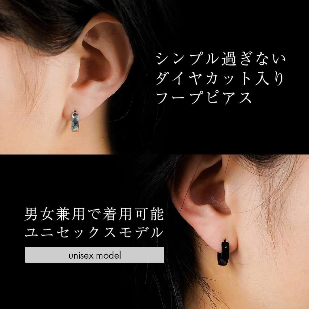 【シンプルなフープピアスにカットが入ったデザイン】ピアスの表面にカットが入っていて様々な角度から光を反射し存在感抜群のフープピアスです。メンズ、レディース兼用で着用可能なユニセックスなデザイン性です。