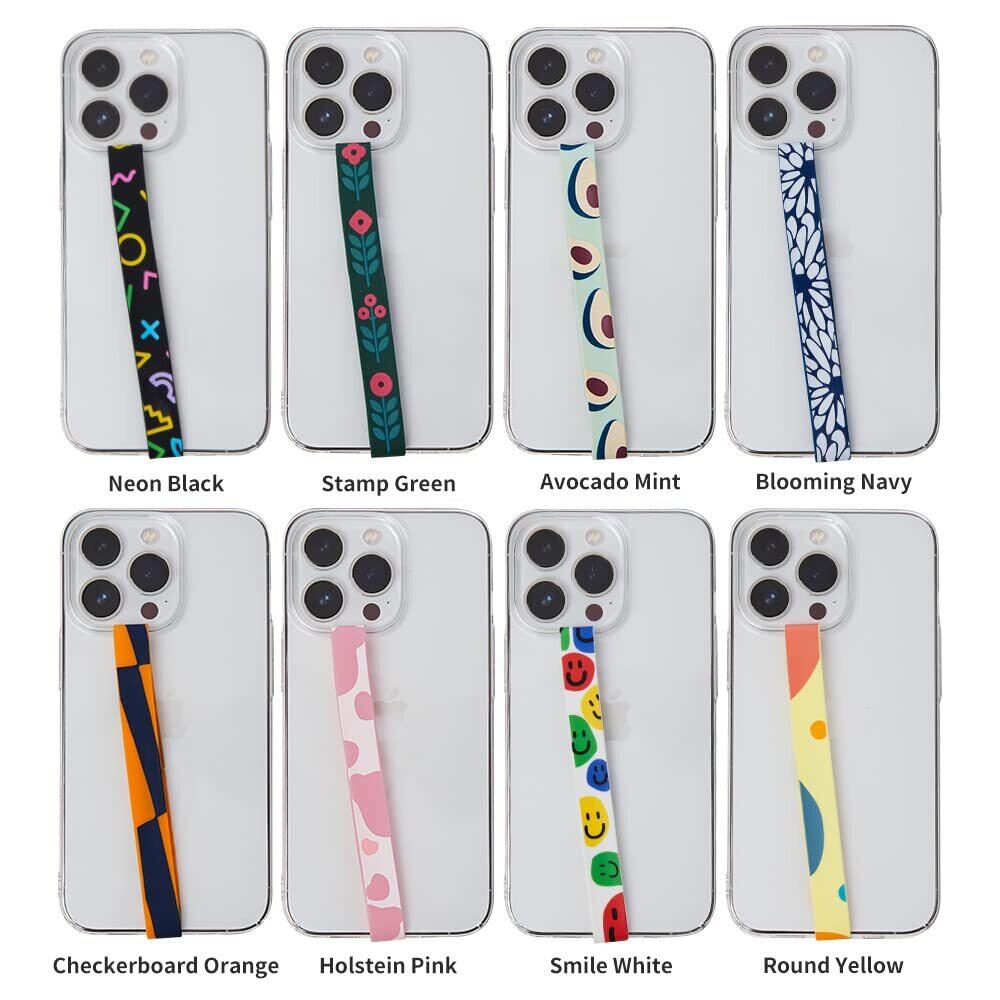 Sinjimoru スマホストラップ、伸びるスマホストラップ スマホ落下防止 薄型 シリコン素材 スマホグリップ 簡単に片手操作 スマホケースにつける かわいいフォンストラップ ワイヤレス充電対応 iPhoneフィンガーホルダー、Sinji Loop Motive Graphics Checkerboard Orange