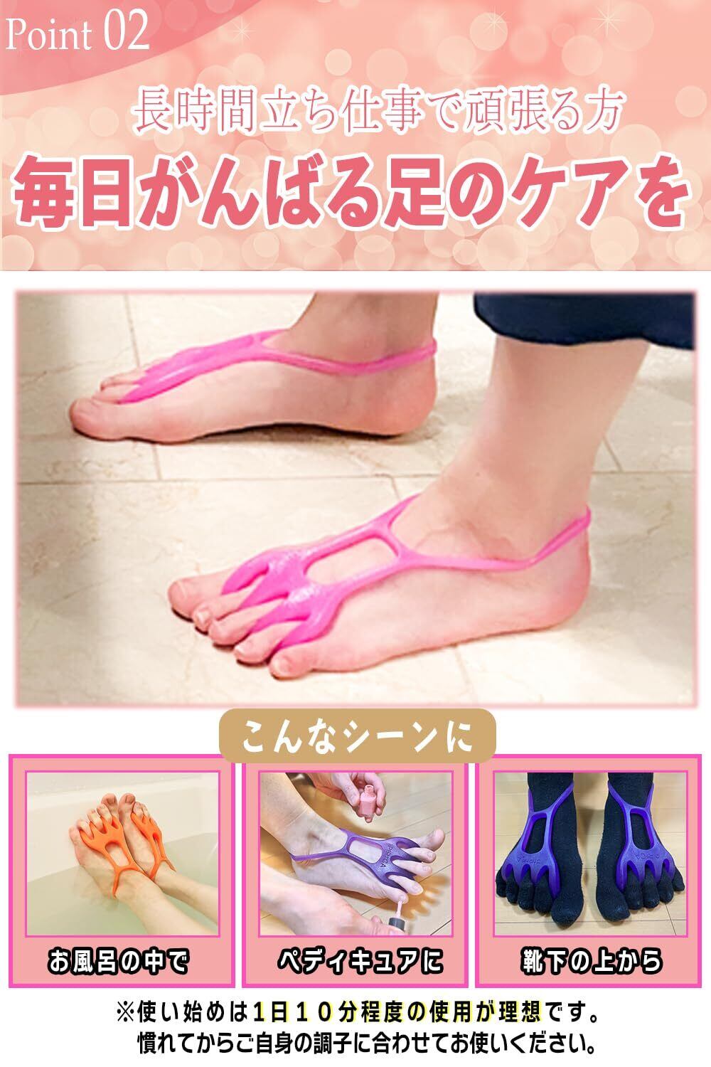 【スッキリした足に】足は立って・歩いて・座ってと寝ている時以外は体を支え続けています。足指を広げて足指と足裏のエクササイズを行うことでスッキリ健康的な足に◎