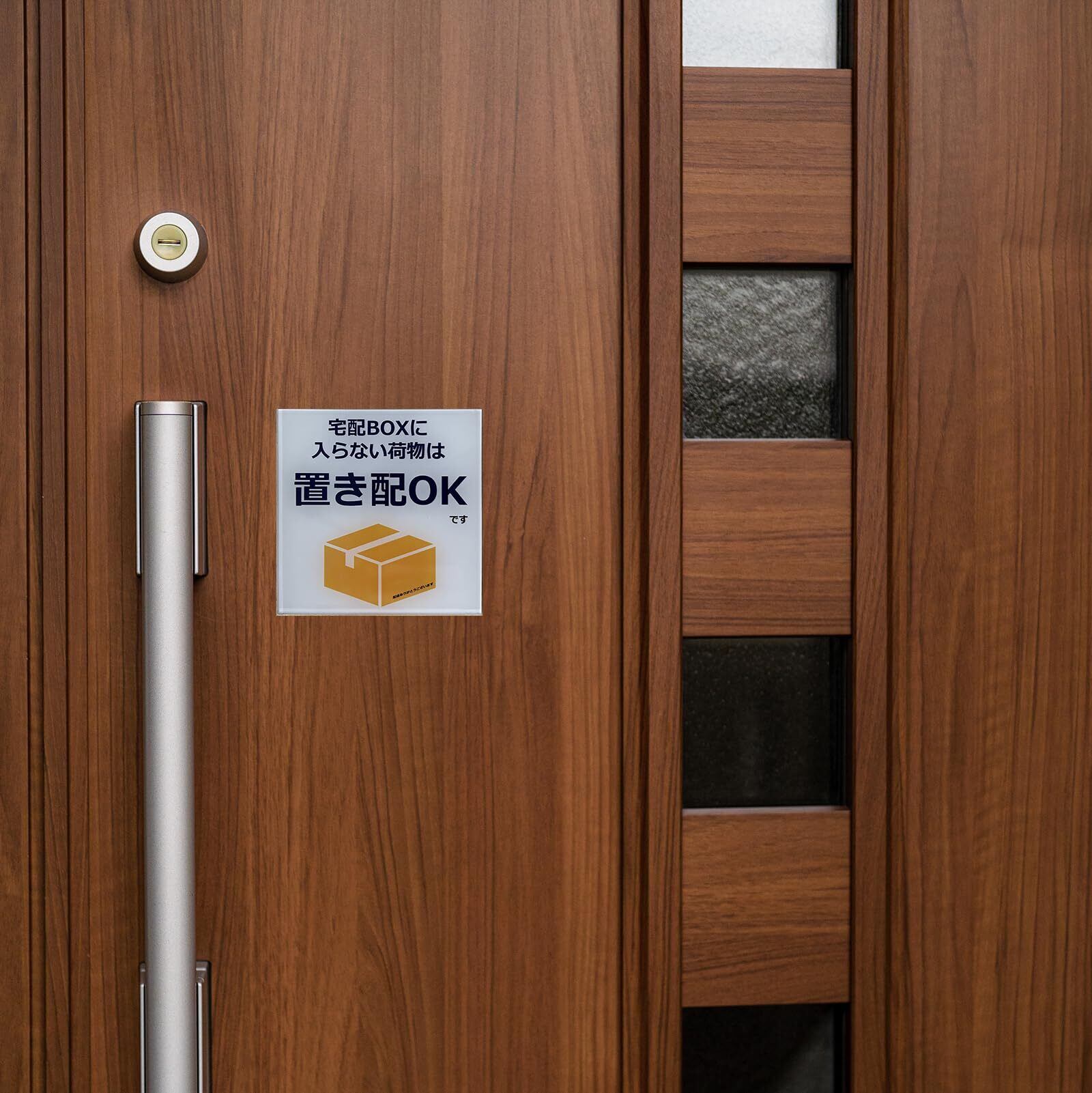 Seagron 宅配ボックスに入らない荷物は置き配OK 宅配ボックス 宅配BOX プレート 両面テープ付き 置き配達 不在案内 再配達防止 2㎜アクリル製 おしゃれ ステッカー (ホワイトー80×80㎜(1枚))… | thanks39
