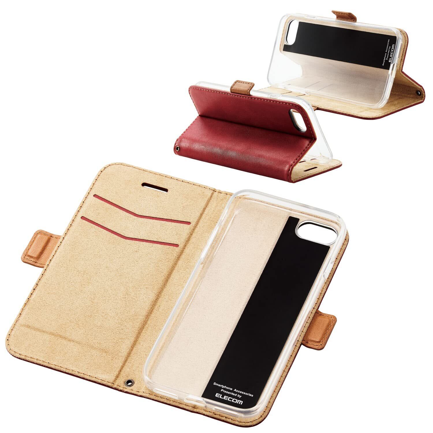 エレコム(ELECOM) iPhone SE (第2世代/第3世代) / 8 / 7 用 ケース 手帳型 レザー 耐衝撃 ステッチ レッド PM-A22SPLFYRD